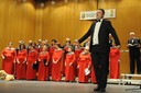 Coral Alaia, con su director en primer plano, recibiendo el aplauso del público en Burgos