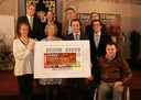 Responsables de la ONCE y autoridades locales muestran el cupón dedicado a la XIV Bienal de Música de la ONCE