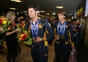 Galindo y Santacana saltan en el podium antes de recibir la medalla de oro